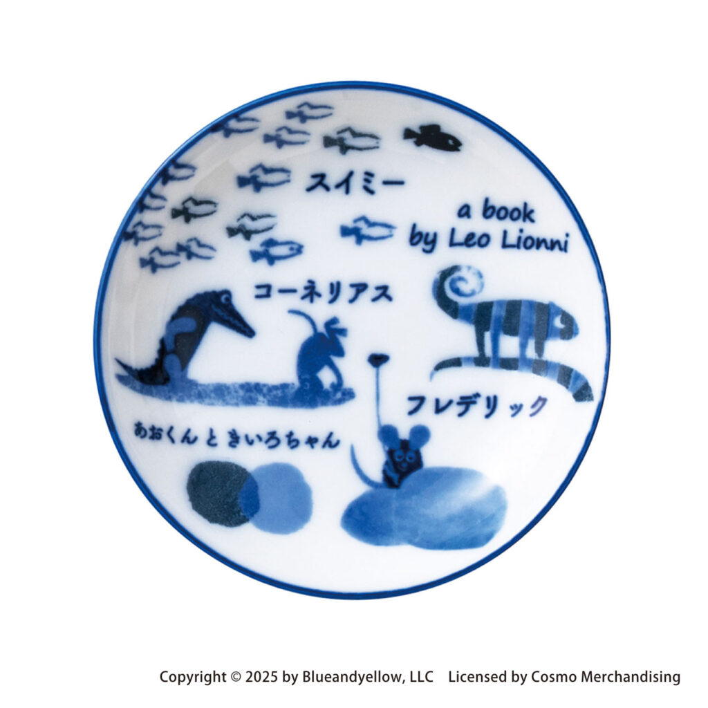 藍色の濃淡がレオ・レオニのキャラクターたちをやさしく引き立て、食卓にほっこり感をプラス。